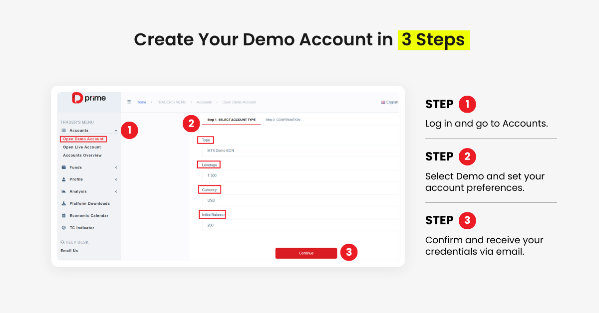 Getting started with a demo trading account at D Prime is simple and straightforward:
