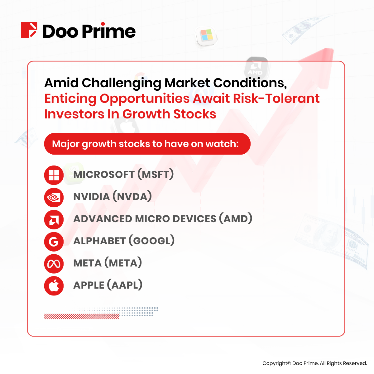 This information is addressed to the general public solely for information purposes and should not be taken as investment advice, recommendation, offer, or solicitation to buy or sell any financial instrument. The information displayed herein has been prepared without any reference or consideration to any particular recipient’s investment objectives or financial situation. Any references to the past performance of a financial instrument, index, or a packaged investment product shall not be taken as a reliable indicator of its future performance. Doo Prime and its holding company, affiliates, subsidiaries, associated companies, partners and their respective employees, make no representation or warranties to the information displayed and shall not be liable for any direct, indirect, special or consequential loss or damages incurred a result of any inaccuracies or incompleteness of the information provided, and any direct or indirect trading risks, profit, or loss arising from any individual’s or client’s investment.