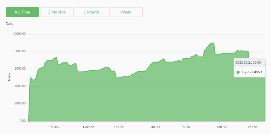 Therefore, we recommend signal providers to hold more than USD 5,000 in capital. “”EURUSD Expert” (EURUSD短线小能手) has a current balance of USD 6,455.1, which has been above the USD 5,000 threshold for most of its inception. While this may not be a large amount, it still indicates a certain level of trustworthiness and commitment to responsible trading.