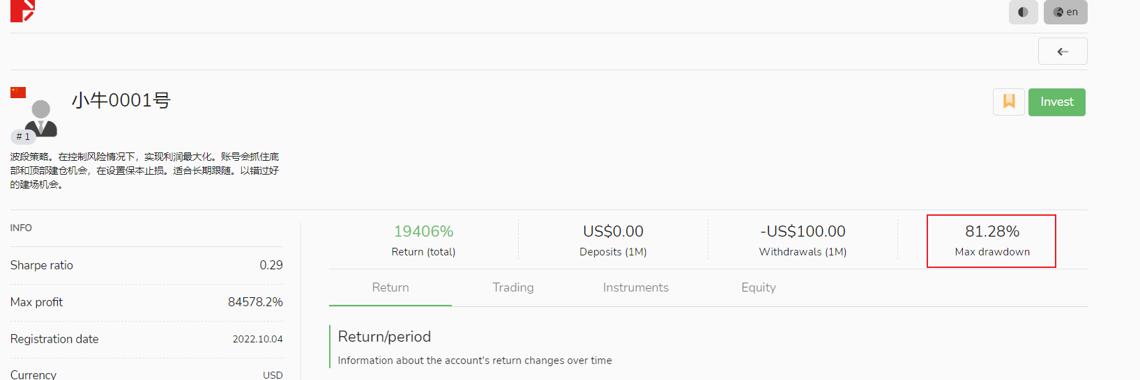 In this issue, we would like to introduce “Xiaoniu No. 0001” (小牛0001号) as our leading signal provider. This signal provider boasts the following key features: