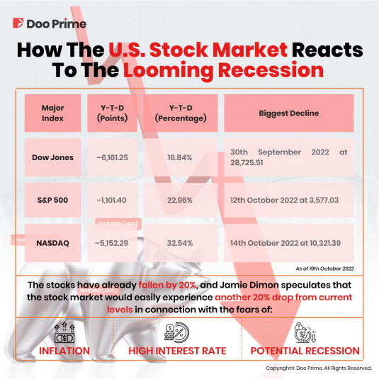 Jamie Dimon, CEO of JPMorgan Chase told CNBC on 10th October 2022 that a particularly severe combination of problems could highly trigger a recession around mid-next year and the stock market could experience greater misery.
