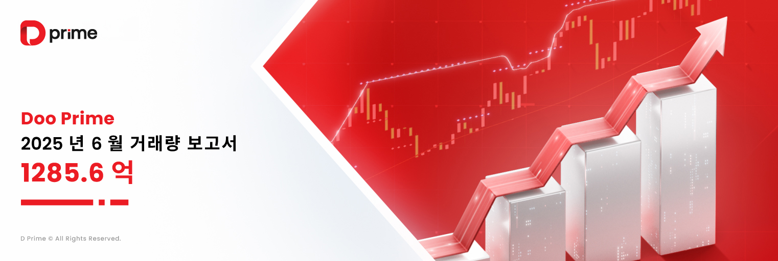 6월에는 중동 정세, 트럼프의 관세 정책 및 감세 법안 등 여러 이슈가 시장 변동을 주도했습니다. 중동의 긴장 고조로 금값과 유가가 급등 후 하락세를 보이며 금과 원유 관련 거래 상품에 대한 관심이 높아졌습니다. 한편, AI가 주도하는 투자 열풍 속에 미국 증시는 강세를 보이며 3대 지수가 상승했고 NAS100(나스닥 100 지수)과 US30(다우존스 지수)이 다시 인기 거래 종목으로 떠올랐습니다. 트럼프의 감세 법안 등의 정책 기대감이 억제되며 달러 지수는 지속적으로 약세를 보였고 유로와 파운드 등 주요 통화는 꾸준히 반등하며 관련 통화쌍의 거래도 활발히 이어졌습니다. 시장 이슈가 빠르게 바뀌는 상황 속에서도 D Prime은 전문적이고 효율적인 서비스를 통해 이용자들이 거래 기회를 포착할 수 있도록 지원하고 있습니다. 6월 총거래량은 전년 동기 대비 약 21.79% 증가해 변동성 큰 시장 환경 속에서도 지속적인 성장 탄력을 보여주고 있습니다.