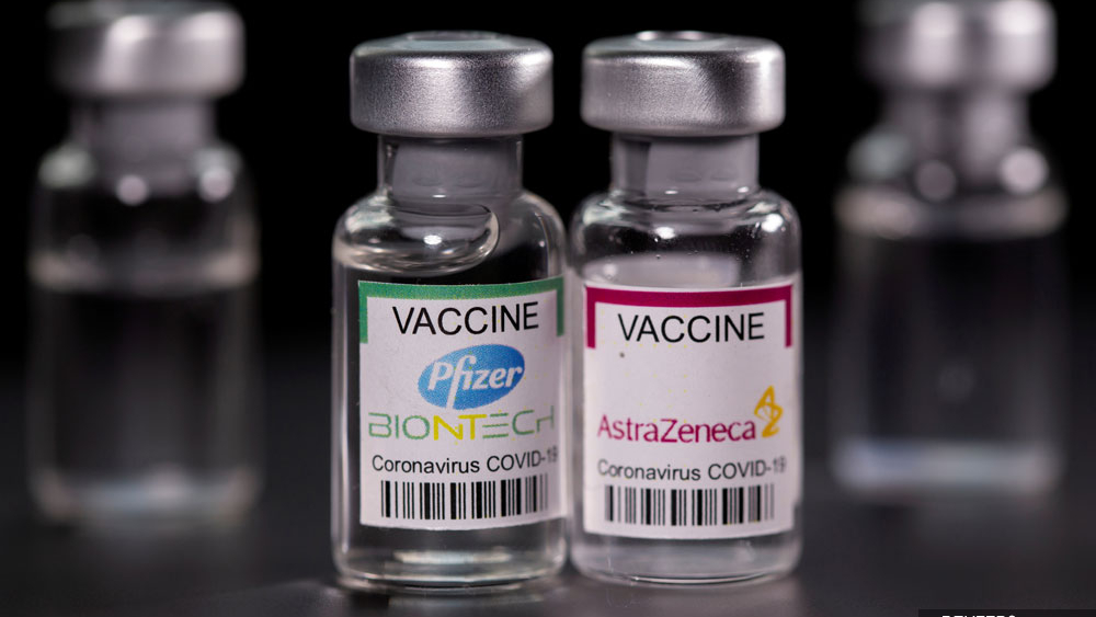 The coronavirus Covid-19 vaccines of Pfizer and AstraZeneca side-by-side.