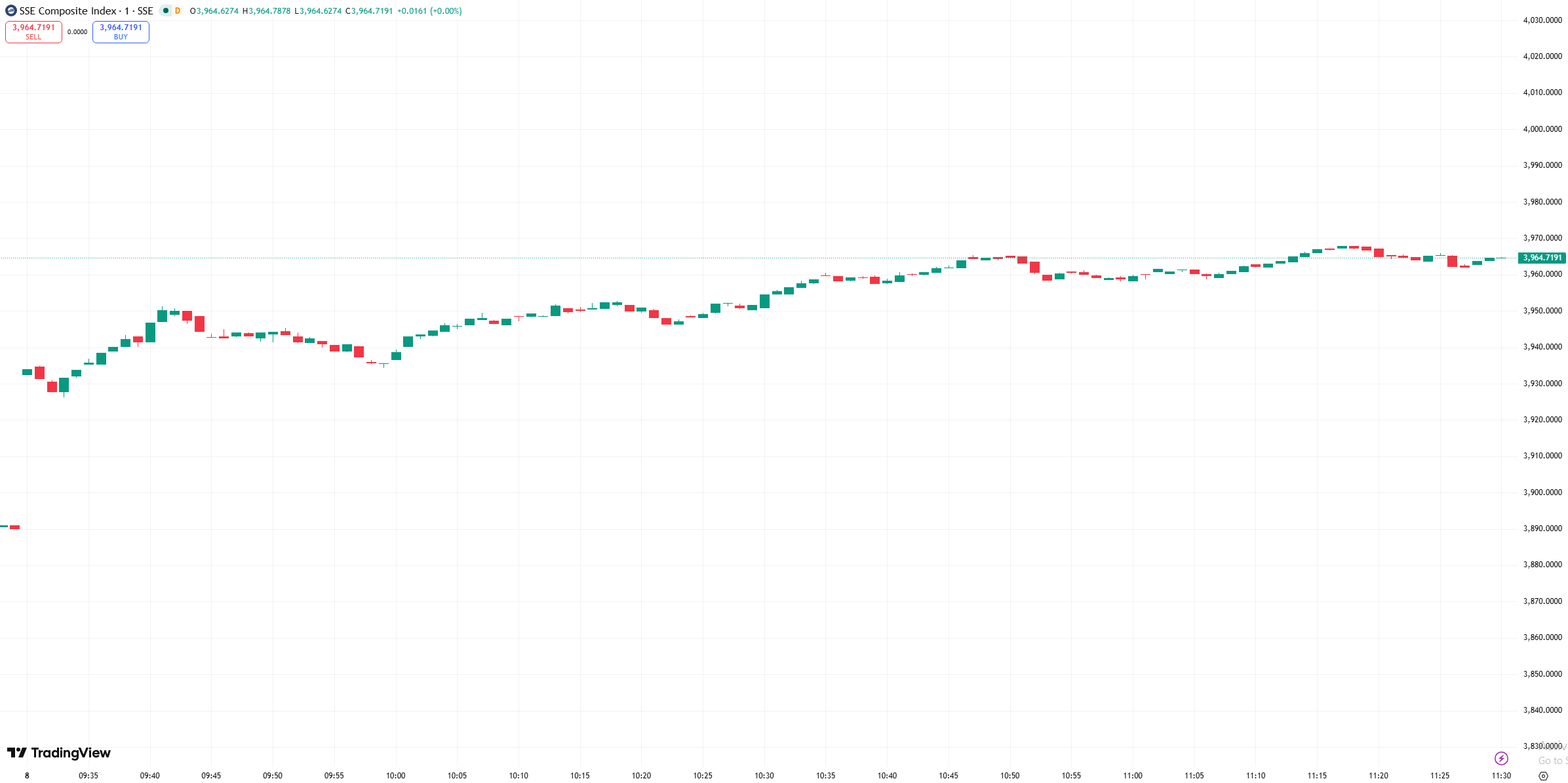 A 股三大指数早盘集体上涨,截至午盘,上证指数涨 1.92%,深证成指涨 3.87%,创业板指涨 4.81%,北证 50 涨 3.51%。全市场成交额 15525 亿元,较上日成交额放量 4746 亿元,全市场超 5000 只个股上涨。