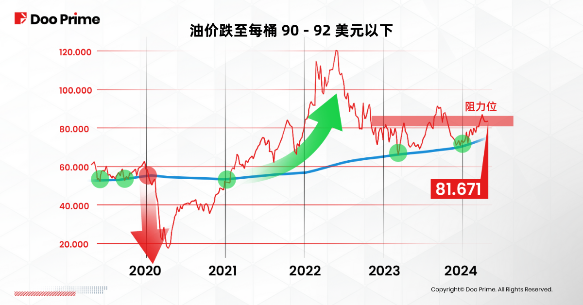 我们目前预计油价将保持稳定,布伦特原油或将在 2024 年下半年,达到 90- 92 美元的阻力位。