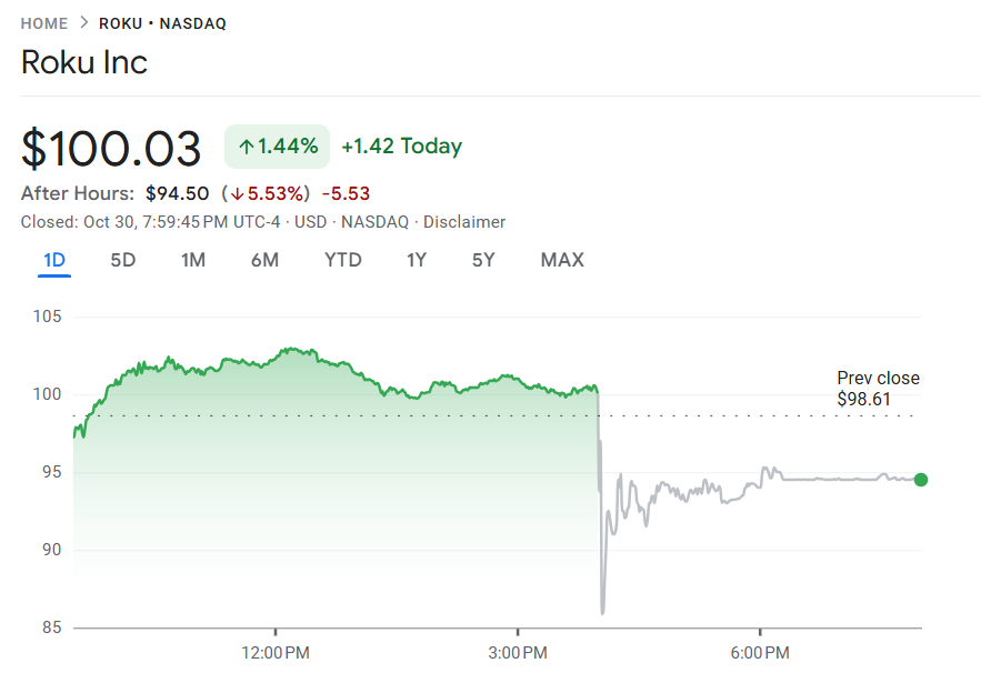 Roku 总流媒体播放时长增长 14.1% 至 365 亿小时,但低于分析师预期的 375 亿小时。设备业务表现疲软,营收下降 5% 至 1.46 亿美元,设备业务营业利润率进一步下滑至 -15.7%。