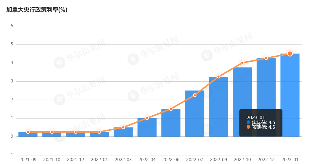 1 月 25 日,加拿大央行宣布加息 25 个基点,使基准利率达到 4.5%,同时表明预计未来将维持利率政策不变,并评估以往加息的影响。