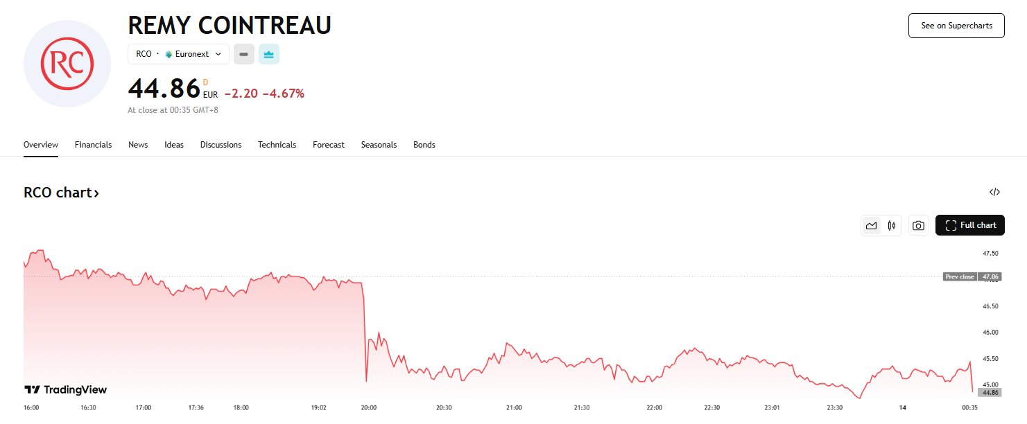 这一表态迅速引发市场震动,欧洲烈酒和饮料生产商的股价应声下跌,拥有葡萄酒和烈酒业务的 LVMH 股价下跌2%,烈酒生产商保乐力加(Pernod Ricard)下跌 3%,人头马君度下跌 4.67%,Davide Campari 下跌2.8%,帝亚吉欧下跌 0.3%。