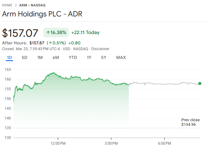 Arm(ARM)股价周三大涨逾 15%,此前公司正式发布首款量产级数据中心处理器——Arm AGI 通用人工智能中央处理器,标志着其从授权模式迈向自研芯片的新阶段。