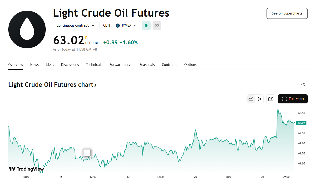 地缘政治紧张情绪急剧升温,美原油强势突破 63 整数关口