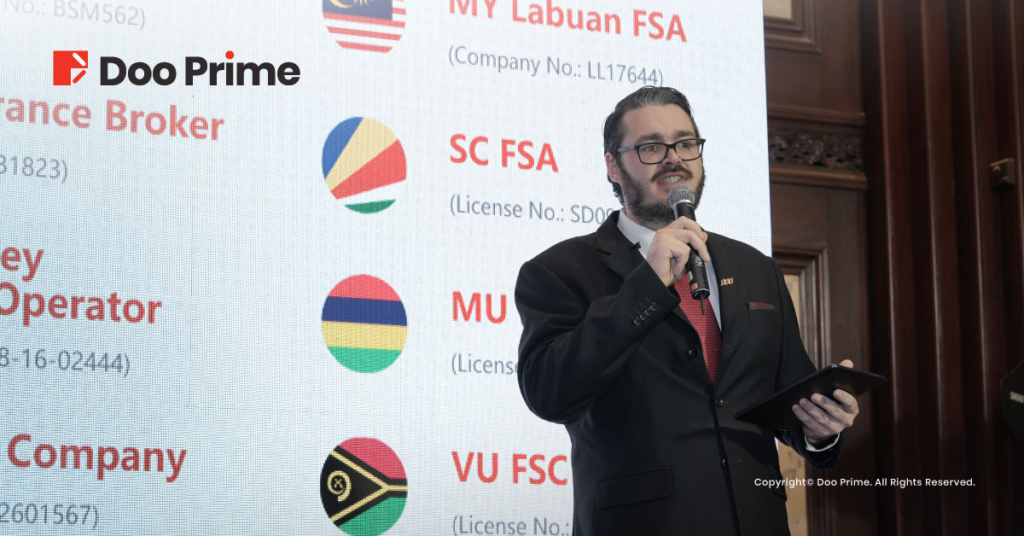 Fraser 的演讲主题为“Transform Your Business To The Next Level”,其中详细阐明了在全方位解决方案与高质量服务的加持下,Doo Prime 已然成为了一个安全高效的交易平台。Fraser 提到,Doo Prime 提供广泛的金融产品选择、实行资金隔离,同时持有全球多个金融监管牌照,其交易工具与平台不仅备受国际认可,更不定时放送多项独家福利,令 Doo Prime 始终保持优势,与时并进。