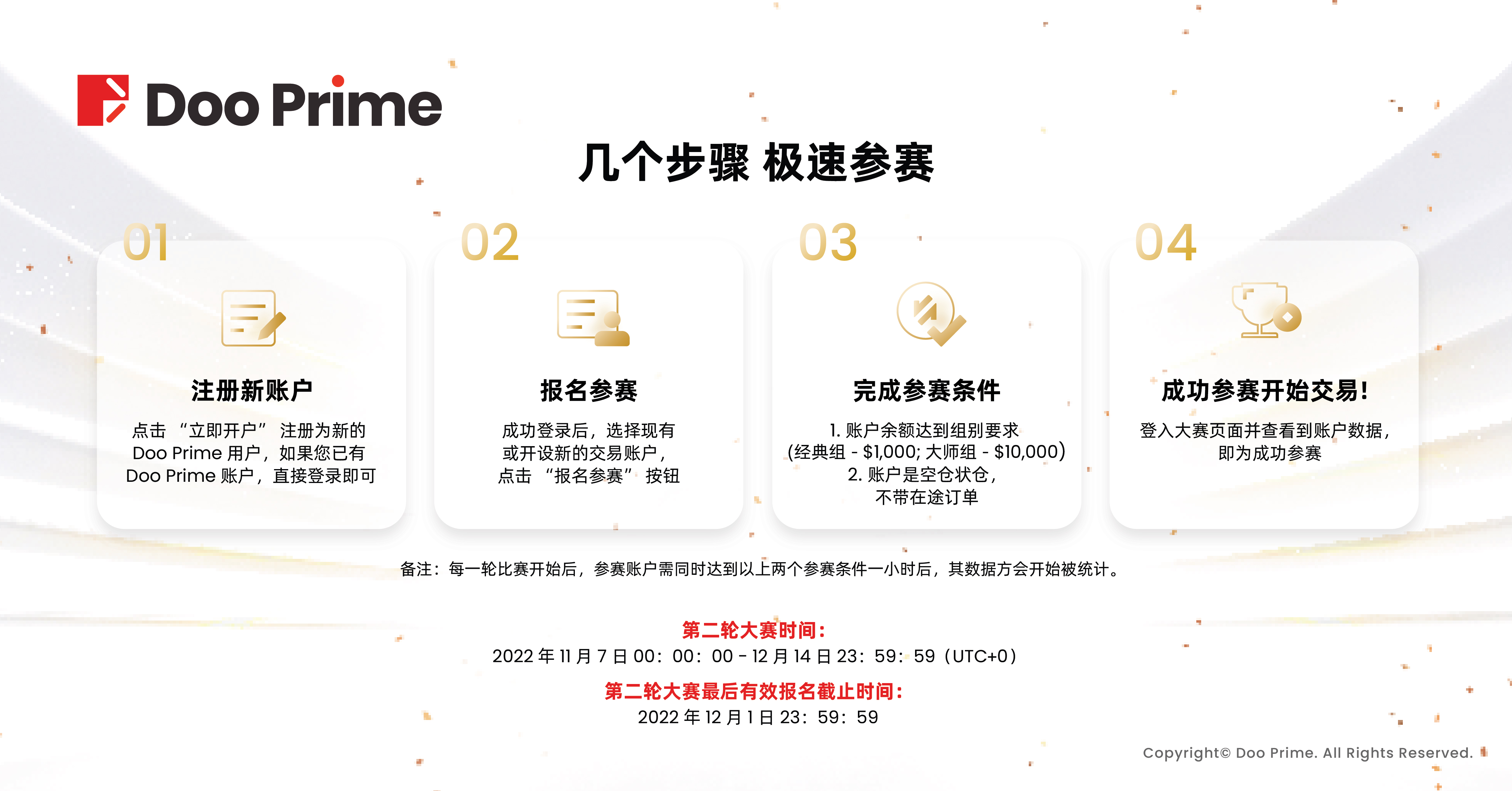 在与 Doo Prime 等交易平台进行任何交易之前,客户需确保已阅读并完全理解各自金融工具的交易风险。如果客户不了解任何与交易和投资有关的风险,则应寻求独立的专业建议。请参考 Doo Prime 等的客户协议和风险披露声明了解更多。