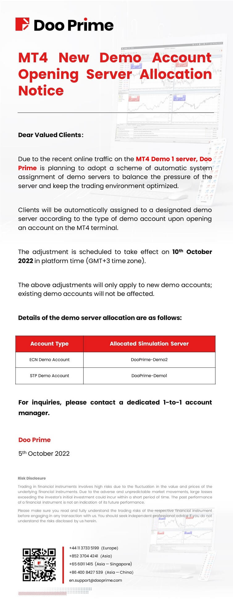 Doo Prime MT4 New Demo Account Opening Server Allocation Notice​