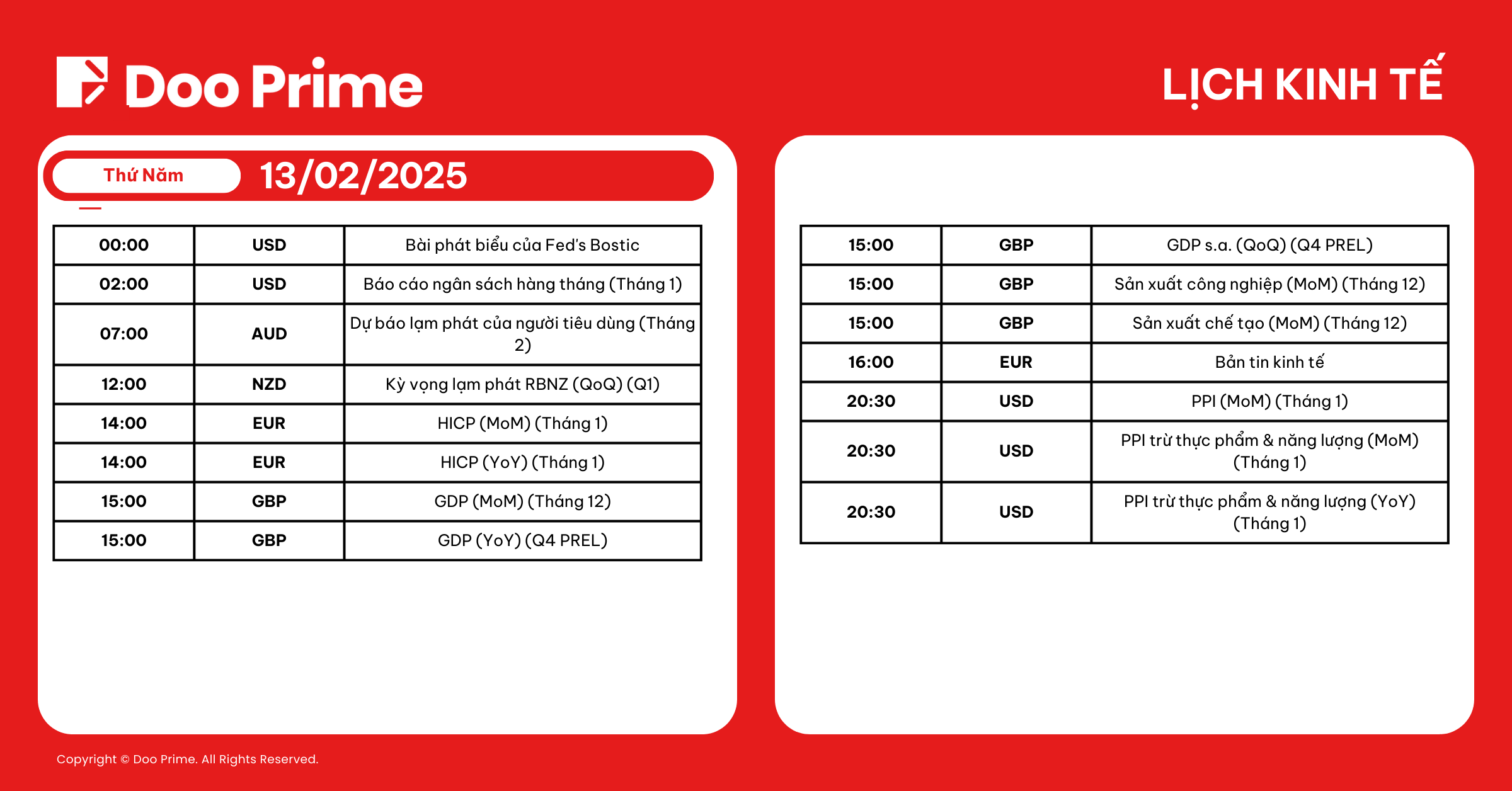 Doo Prime xin thông tin đến bạn những sự kiện kinh tế nổi bật từ 10/02 đến 14/02/2025.